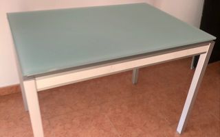 Mesa de cocina/comedor color blanco con sobre de cristal templado, moderna y muy práctica. ✔ Diseño moderno ✔ Sobre de cristal templado ✔ Patas metálicas ✔ Fácil de limpiar ✔ Extensible 📏 Medidas • Cerrada: 110 cm largo × 70 cm ancho × 74 cm alto • Abierta: 145 cm largo × 70 cm ancho × 74 cm alto Estado muy bueno, sin roturas ni desperfectos, solo uso normal. Siempre en interior. Motivo de venta: renovación de cocina.