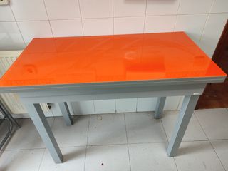 Vendo mesa de cocina color naranja Medida de largo 100 cm Ancho 50 Alto 80 La extensión se hace por ambos lados añadiendo 15 cm por lado. Dando una mesa de 80 de ancho