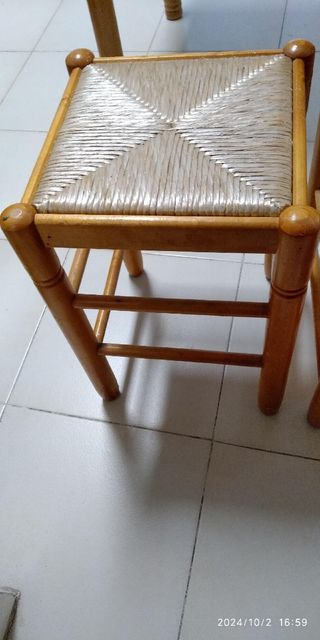 Mesa y cuatro taburetes en perfecto estado, medidas de taburetes con estructura de metal y base en madera 8X27X88. Venta por falta de espacio.
