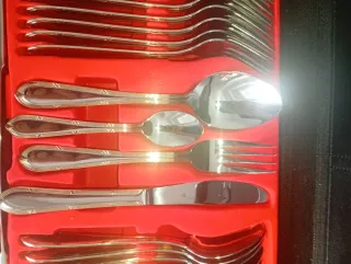Elegante cubertería completa para 12 servicios, con un acabado bañado en oro que aporta un toque de distinción a tu mesa. - Diseño clásico y de diseño. - Incluye cubiertos para 12 personas + otros accesorios (cazo, pinzas...) - Incluye maletin con cerradura con clave privada. - Ideal para coleccionistas. Nueva a estrenar.