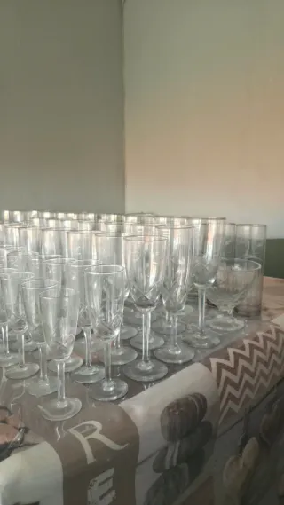Auténtica cristalería Bohemia con un diseño labrado y elegante. Ideal para ocasiones especiales o para añadir un toque de distinción a tu mesa. - Piezas sin estrenar. - Diseño labrado. - 24% Pbo - 48 piezas: cava, vino, agua y cóctel - 8 cajas de seis unidades:. 1 caja de 6 unidades 65 € 2 cajas 110 € Cristalería completa 390€