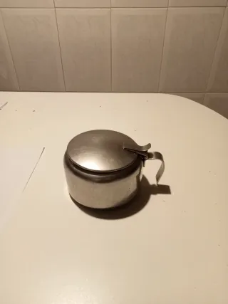 Azucarero de acero inoxidable con tapa y asa. - Diseño moderno y funcional. - Acabado pulido. - Ideal para cualquier cocina o mesa.