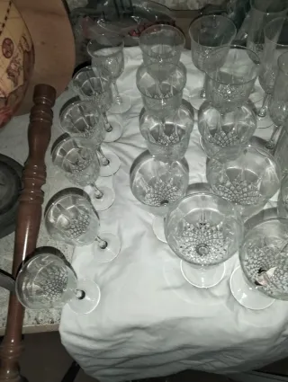 Conjunto de seis copas antiguas de cristal tallado, perfectas para celebraciones. Vintage. 19cm de alto. EN otro anuncio tengo otras seis de 15 cm del mismo juego pero tamaño menor c4gj - Diseño clásico y elegante. - Base estable y tallo esbelto. - Aportan un toque de distinción a la mesa.