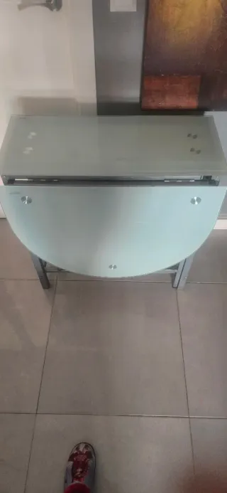 Mesa de cocina con un diseño moderno y elegante. Su forma redonda la hace ideal para optimizar el espacio. - Base estable y robusta. - Acabado liso y fácil de limpiar. No pongo foto porque es nueva esta en su caja sin abrir