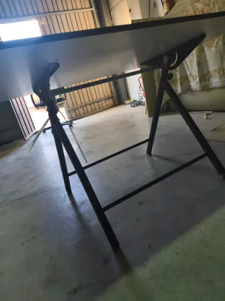 Mesa de dibujo técnico con superficie blanca y estructura metálica. - Superficie de trabajo amplia. - Patas plegables para fácil almacenamiento. - Altura ajustable. - paralex -silla opcional Precio negociable Silla + mesa 120€ negociable
