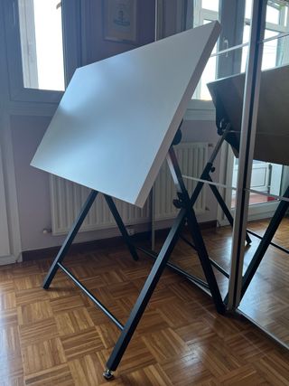 Mesa de dibujo técnico en perfecto estado, como nueva. Ideal para estudiantes o profesionales del diseño. - Superficie amplia y lisa. - Estructura robusta de madera. - Diseño inclinable para mayor comodidad.