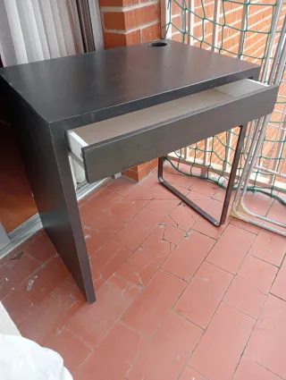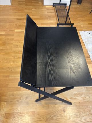 Vendo mesa/escritorio plegable de IKEA en color negro efecto madera. Ideal para espacios pequeños, teletrabajo o estudio. Medidas: 75 x 60 cm Plegable: se puede cerrar completamente para guardarla o ahorrar espacio. Repisa superior ajustable/inclinable, perfecta para apoyar un portátil, libros o una tablet. Estructura metálica resistente y tablero de madera. Diseño compacto y moderno. Está en muy buen estado, como se ve en las fotos. Perfecta para home office, estudiantes o pisos con poco espacio.