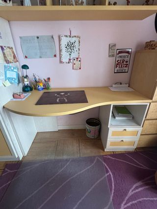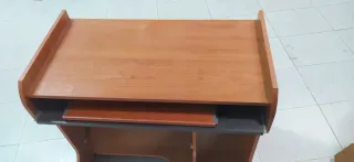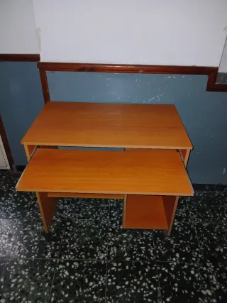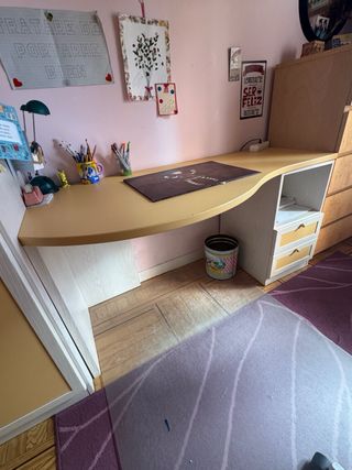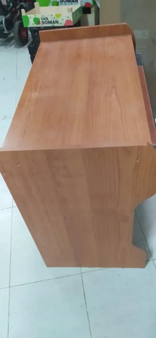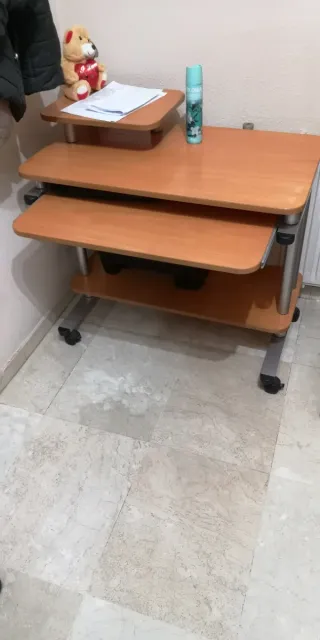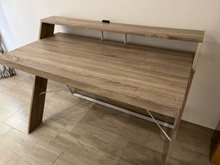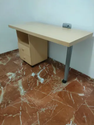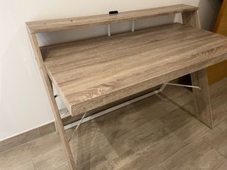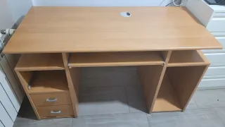 Mesa de estudio 130x60cmx 75 de alto. Cuenta con espacio de almacenamiento. - Superficie de madera clara. - Bandeja extraíble para teclado. - Compartimentos abiertos. - Cajonera con dos cajones. Hay que recogerlo tal cual en el domicilio hasta el domingo 15/03