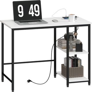 Escritorio para Computadora 100X50 Cm Con 2 Estantes Reversibles Y Tomas USB Integradas, Mesa PC para Gaming, Casa, Estudio Y Oficina, Blanca Y Negra
