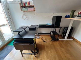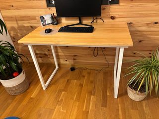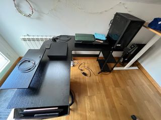 Escritorio de estudio con un diseño moderno y funcional. Ideal para tu espacio de trabajo o entretenimiento. - Superficie amplia para colocar equipos. - Cajón extraíble para teclado o almacenamiento. - Patas metálicas resistentes. Lo vendo únicamente si vienen a recoger .