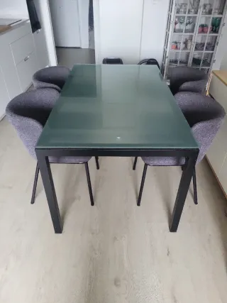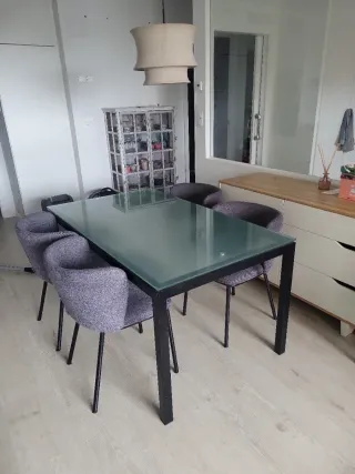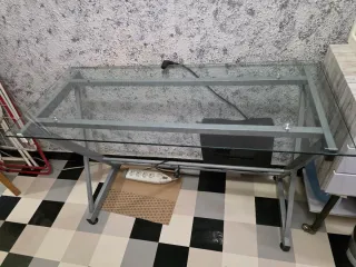 Elegante mesa de comedor con superficie de cristal y estructura de metal. Valida para oficina o para estudio. Urge venta! - Diseño moderno y minimalista. - Patas metálicas robustas.