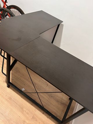 Mesa de escritorio con diseño en L, ideal para optimizar el espacio. - Estructura robusta. - Superficie amplia para trabajar o estudiar. - Acabado elegante.