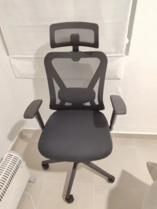 No se realizan envíos, se entrega en mano montada. Nueva costó 95€. Está en La Línea Silla ergonómica de diseño moderno, ideal para tu espacio de trabajo o estudio. Se encuentra en perfecto estado, prácticamente nueva. - Respaldo y asiento cómodos. - Reposacabezas ajustable. - Brazos ergonómicos. - Base con ruedas para fácil movilidad.