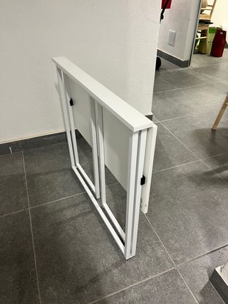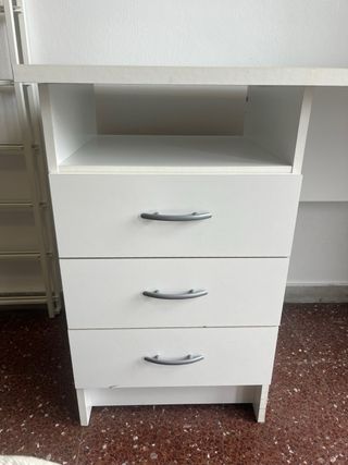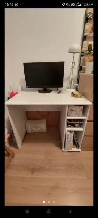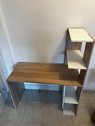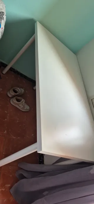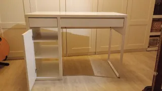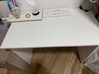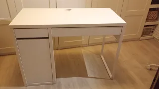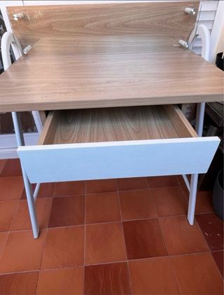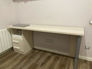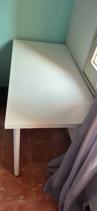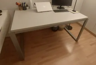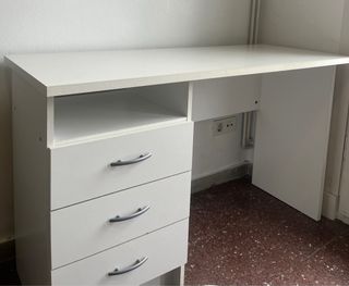 Mesa escritorio perfecta para estudiar o oficina. Tiene algún desgaste pero es mínimo, lo que se aprecia en las fotos. Color blanco. Muy fácil de montar y muu práctica.