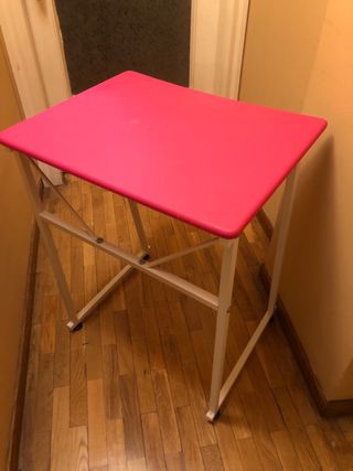 Mesa de estudio rosa y blanca