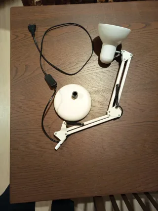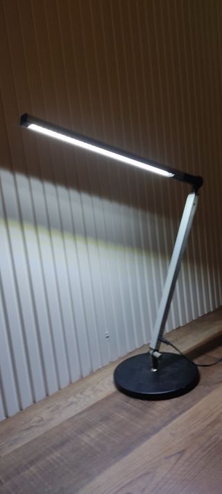 Flexo de mesa con un diseño moderno y funcional. Ideal para cualquier espacio de trabajo o estudio. - Brazo articulado para ajustar la posición de la luz. - Base redonda estable. - Cada barra mide unos 30 cm. - Altura máxima de unos 60 cm.