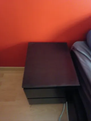 Mesita de noche con un diseño moderno y elegante. Cuenta con dos cajones para almacenamiento. - Diseño de dos cajones. - Acabado liso y contemporáneo.