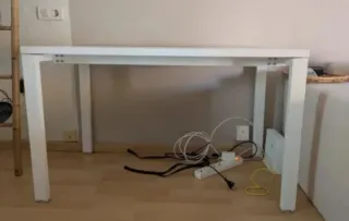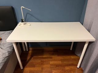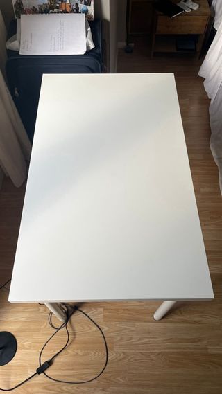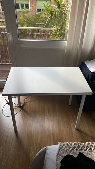 Mesa de escritorio de IKEA, ideal para tu espacio de trabajo o estudio. Su diseño sencillo y funcional se adapta a cualquier ambiente. - Color blanco. - Patas resistentes.