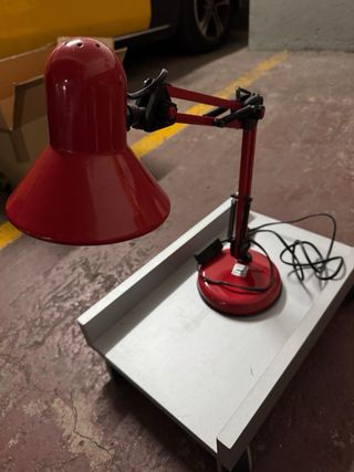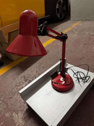 Lámpara de mesa roja y plateada