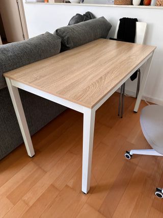 Mesa de comedor o de trabajo de Ikea, modelo Pinntorp. Mesa usada pero casi en perfecto estado. Solo tiene unas pequeñas imperfecciones estéticas, prácticamente invisibles y que no afectan a su uso. Ideal para cocina, salón o zona de estudio: resistente, estable y fácil de limpiar. 💰 Precio: • 40 € solo la mesa • 70 € mesa + 2 sillas Ikea ( info en dm) Parada Metro Parallel puedo desarmarla