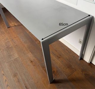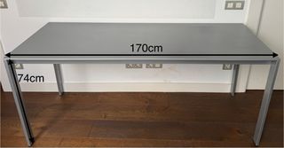 Mesa de diseño. Modelo Mekanika, diseñada por J. Uriarte para OKILE, Vizcaya. - 240 x 76h x 80 cm - Estructura de hierro, revestido con pintura gris plata. - Encimera laminada con superfície de fórmica de alta calidad. - Niveladores de suelo en las cuatro patas. Es una mesa muy robusta. Ideal para estudios de diseño, arquitectura, taller, oficina... La mesa se encuentra en muy buen estado. Comprada en Vinçon. 📍Se recoge en Barcelona