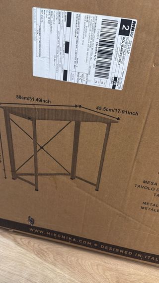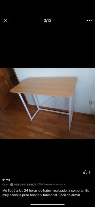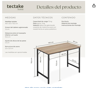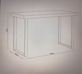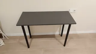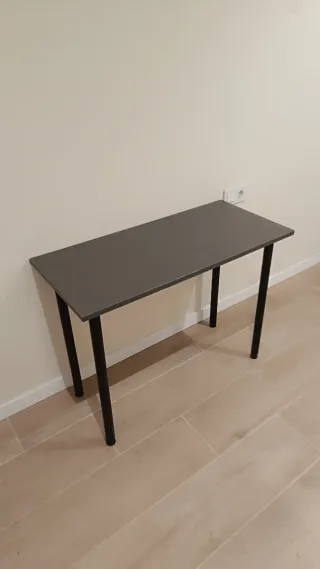 Mesa de escritorio con un diseño moderno y funcional, perfecta para tu espacio de trabajo o estudio. Sus dimensiones la hacen ideal para optimizar el espacio. - Tablero con acabado imitación madera. - Patas metálicas resistentes. En perfecto estado, en su embalaje original. La pedí por amazon y por medidas no me cabe.