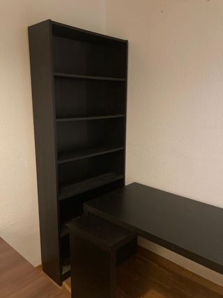 Mesa y estantería negra