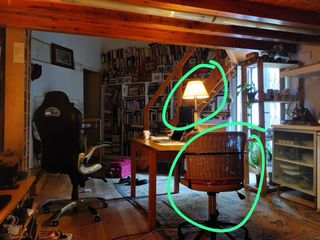 Mesa de madera y silla de oficina