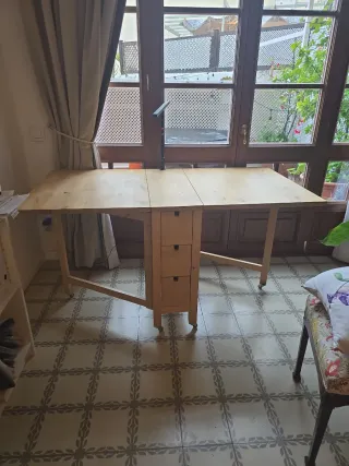 Vendo mesa de comedor IKEA en color madera clara. Diseño sencillo y funcional, ideal para cocina o comedor pequeño. Es extensible, por lo que se puede ampliar fácilmente cuando vienen visitas. 📏 Tamaño compacta y práctica 🪵 Acabado madera clara, fácil de combinar ✅ Buen estado general, estable y bien cuidada 🏠 Perfecta para pisos, estudios o como mesa auxiliar Se vende por mudanza. Recogida en mano en Porta.
