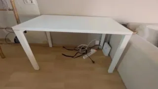 Vendo 2 mesas iguales — pueden usarse como escritorio o mesa de comedor. En perfecto estado, como nuevas. Se venden por mudanza. Color beige y blanco Tamaño 120 x 60 x 76 cm Precio original: 89,99 € (cada mesa)