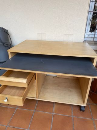 Escritorio de madera con ruedas