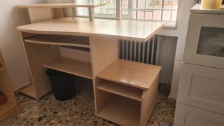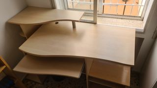 mesa de estudios para ordenador. como nueva muy poco uso. tiene 65 cm en la parte más ancha del fondo y 140 de largo