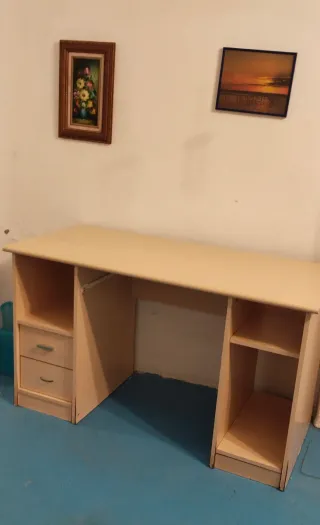Mesa de estudio robusta y duradera, ideal para cualquier espacio de trabajo o estudio. Su diseño funcional la hace muy práctica. Dos cajones de gran capacidad. Tablero elevable - Superficie amplia y lisa. - Patas de madera firmes. Urge venderla