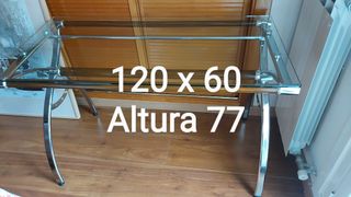 Mesa de cristal, en perfecto estado, las medidas son 120*60 y 77 de altura. Sólo recoger, no se envía.