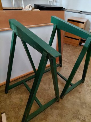 Par de caballetes de madera y metal, ideales para tu espacio de trabajo o estudio. - Color verde. - Estructura fija.