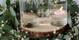 Set de centros de mesa rústicos con base de madera. Se vende set de 2 maderas de 20 y 22cm como se ve en la primera imagen. Tenemos 6 sets, los 6 por 65€ También se venden los portavelas (mirar otros listings) portavelas + maderas por 20€