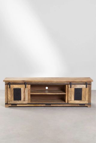 El Mueble TV 160x40 cm en madera de mango Uain está fabricado en madera de mango y presenta detalles originales de hierro envejecido de alta calidad, para darle un carácter industrial. Con un diseño rústico y lleno de funcionalidad, podrás mantener organizados todos los accesorios de la televisión. Esta en excelente estado, un año de uso. Nueva esta 299€. Como lo dice la foto de la pagina oficial de sklum.