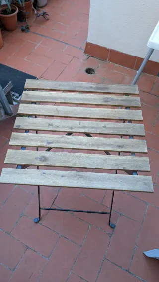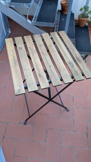 Mesa plegable para exterior con un diseño rústico y funcional. - Tablero de madera con listones. - Estructura metálica plegable. Ikea tarno Madera balcon terraza