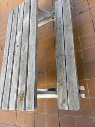 Mesa de exterior de madera maciza con tablero superior de baldosas hidráulicas decorativas, muy vistosa y con estilo mediterráneo/vintage. • Uso exterior (terraza, balcón o jardín cubierto) • Estructura sólida y estable • Tablero con mosaico cerámico en buen estado • Estilo rústico y decorativo • Estado general: correcto, con marcas normales de uso en la madera (ver fotos) Ideal como mesa auxiliar, mesa de terraza o rincón decorativo. Se vende por cambio de mobiliario.