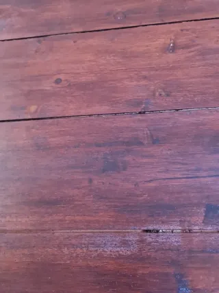 Mesa de madera con un diseño vintage y un acabado que le da un toque rústico. - Tablero de madera con listones. - Patas de madera robustas.se entrega con ese tablero o similar acabada