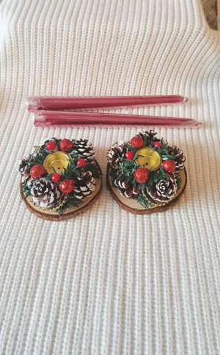 Portavelas de Navidad – artesanal Cada portavelas está hecho a mano con mimo y detalle, elaborados sobre una base de madera natural. ( Diámetro 9 cm) Cuidadosamente trabajadas para mantener su aspecto auténtico y rústico. Cada pieza incluye una vela decorativa que combina a la perfección con su estilo navideño, rústico y natural. Ideal para decorar mesas, estanterías, centros de mesa o cualquier rincón especial. Cada pieza es única, lo que lo convierte en un detalle perfecto para regalar esta Navidad. Pack de 2 piezas : 25€ Precio por unidad 15€ c/u Hacemos lotes y envíos Más productos artesanales en mi perfil #artesania