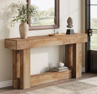 vendo una consola para entrada de casa que he comprado por error. Nueva, sin abrir la caja. descripcion de leroy: Consola de estilo rústico: Esta mesa de entrada de madera presenta un diseño clásico de dos niveles y un acabado rústico, aportando un toque cálido y rústico a cualquier habitación. Superficie espaciosa: Esta mesa de centro larga ofrece un amplio espacio para colocar cuadros, adornos, libros o lamparas, transformando una pared vacía en un elegante punto focal. Material de primera calidad: Fabricada con madera de ingeniería de primera calidaa, esta consola de madera esta diseñada para durar y mantener su estructura...