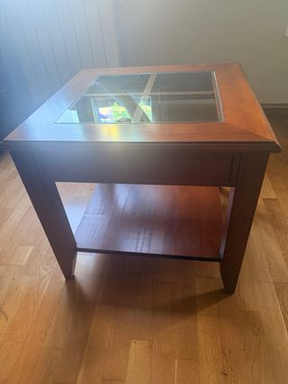 Mesita rústica auxiliar madera y cristal