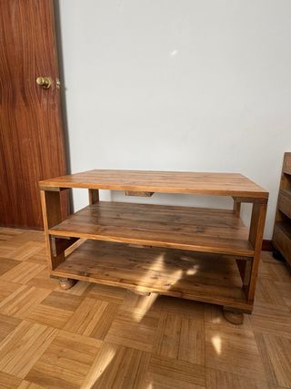 Elegante mesa auxiliar de madera maciza con un diseño rústico y elegante. Ideal para añadir un toque cálido a cualquier espacio. - Amplio espacio de almacenamiento. - Acabado en tono madera natural. - Diseño robusto y duradera. Se vende a juego con vitrina y estanteria (también en este anuncio en las fotos posteriores) Interesados por precio individual ver en mi perfil. Precio