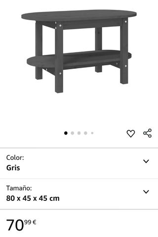vidaXL Mesa de Centro de Madera Maciza de Pino Gris 80x45x45 cm MarcavidaXL Material del marcoMadera ColorGris Tipo de material de la parte superiormadera de pino FormaÓvalo EstiloRústico Da un toque de elegancia a la casa con esta clásica mesa de centro de madera. 【Madera de pino maciza:】 La madera de pino maciza es un bonito material natural. La madera de pino tiene vetas rectas, y los nudos dan al material su distintivo aspecto rústico. 【Superficie práctica:】 La práctica superficie de la mesita auxiliar es perfecta para colocar bebidas, comida y artículos decorativos. El estante abierto ayuda a mantener organizadas las cosas del