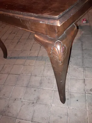 Vendo mesa de comedor estilo rústico/colonial en madera maciza, muy sólida y con gran presencia. 📏 Medidas: • Largo: 175 cm • Ancho: 90 cm • Alto: 77 cm Ideal para 6 personas cómodamente (hasta 8 en ocasiones). Fabricada en madera maciza con veta natural muy bonita. Patas torneadas robustas y detalles metálicos decorativos en las esquinas que le dan carácter. La estructura interior está reforzada con bastidor (no es aglomerado), lo que la hace estable y resistente. Estado: • Estructuralmente perfecta • Presenta desgaste superficial normal del uso en la parte superior (ver fotos) • No tiene carcoma ni daños estructurales