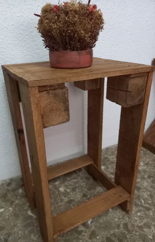Pareja de mesillas rústicas de madera maciza efecto carcoma.