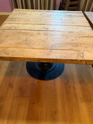 Mesa de madera con patas de hierro negro. Efecto rustico. 1,20*0,73*0,35 (largo*ancho*alto)