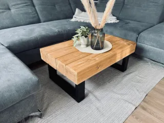 Mesa de centro con un diseño rústico y natural, perfecta para dar un toque único a tu salón. - Fabricada en madera maciza. - Acabado en tono marrón cálido. - Patas de hierro robustas y estables