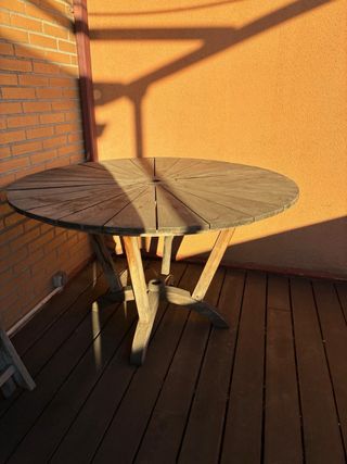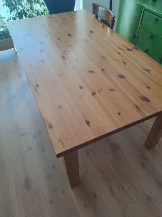 Mesa de comedor robusta y espaciosa, ideal para reuniones familiares. - Fabricada en madera de pino macizo. - Diseño rústico con patas torneadas. - Superficie amplia para varios comensales. - Medidas: 120x75. Alto: 79 cm. - Tiene algún desperfecto por el uso pero, en general, en muy buenas condiciones. - Tiene cristal de protección. Habría que recogerlo en Las Brisas cerca de Sacedon, Guadalajara.